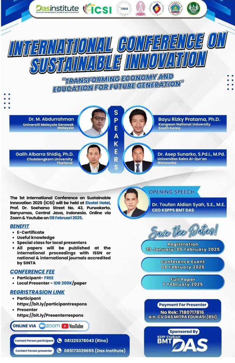 Terimakasih telah mengunjungin Informasi Website Lini Conference dan Proceeding dengan judul proceeding International Conference on Social Science and Technology for Suntainable Future Dan Proceeding International Conference on Sustainability and Innovation. Proceeding ini diterbitkan oleh Das Institute, wadah ilmiah yang disediakan untuk mempublikasikan dan menyebarluaskan karya-karya akademik secara profesional. Melalui platform ini, kami menghadirkan proceeding yang diterbitkan dengan standar akademik yang sahih dan dapat dipertanggungjawabkan, sehingga dapat menjadi rujukan ilmiah yang bermanfaat bagi peneliti, akademisi, maupun praktisi dalam pengembangan ilmu pengetahuan.