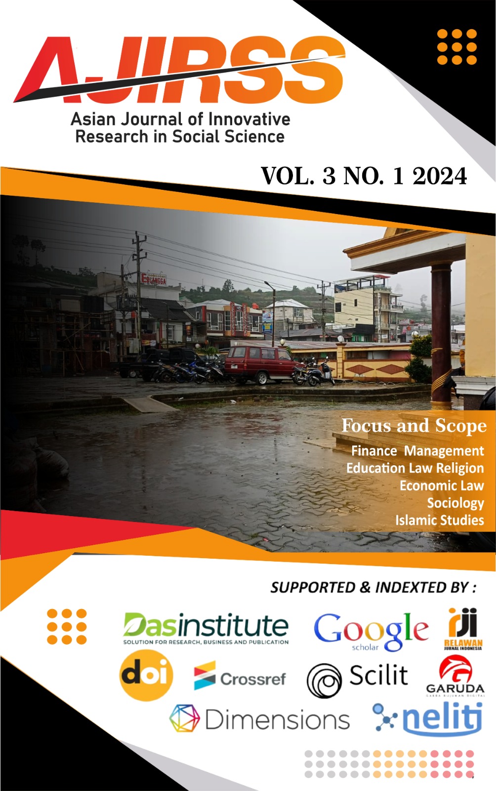 Asian Journal of Innovative Research in Social Science" is a multidisciplinary journal that integrates topic coverage from various fields of social sciences and humanities, including consumer and family economics, finance, management, education, law, media and communications, political science and public policy, social studies population, psychology, religion, Islamic law, sociology, tourism, arts and culture, dance, language and linguistics, literature, music, philosophy, and sports. This journal aims to facilitate the exchange of ideas and research across disciplines, promote innovation, and increase understanding of society and culture in Asia to benefit science and society worldwide. The Asian Journal of Innovative Research in Social Science is published four times a year, namely in March, June, September, and December. This journal has been assigned ISSN number: 2829-3061 (Online - Electronic).