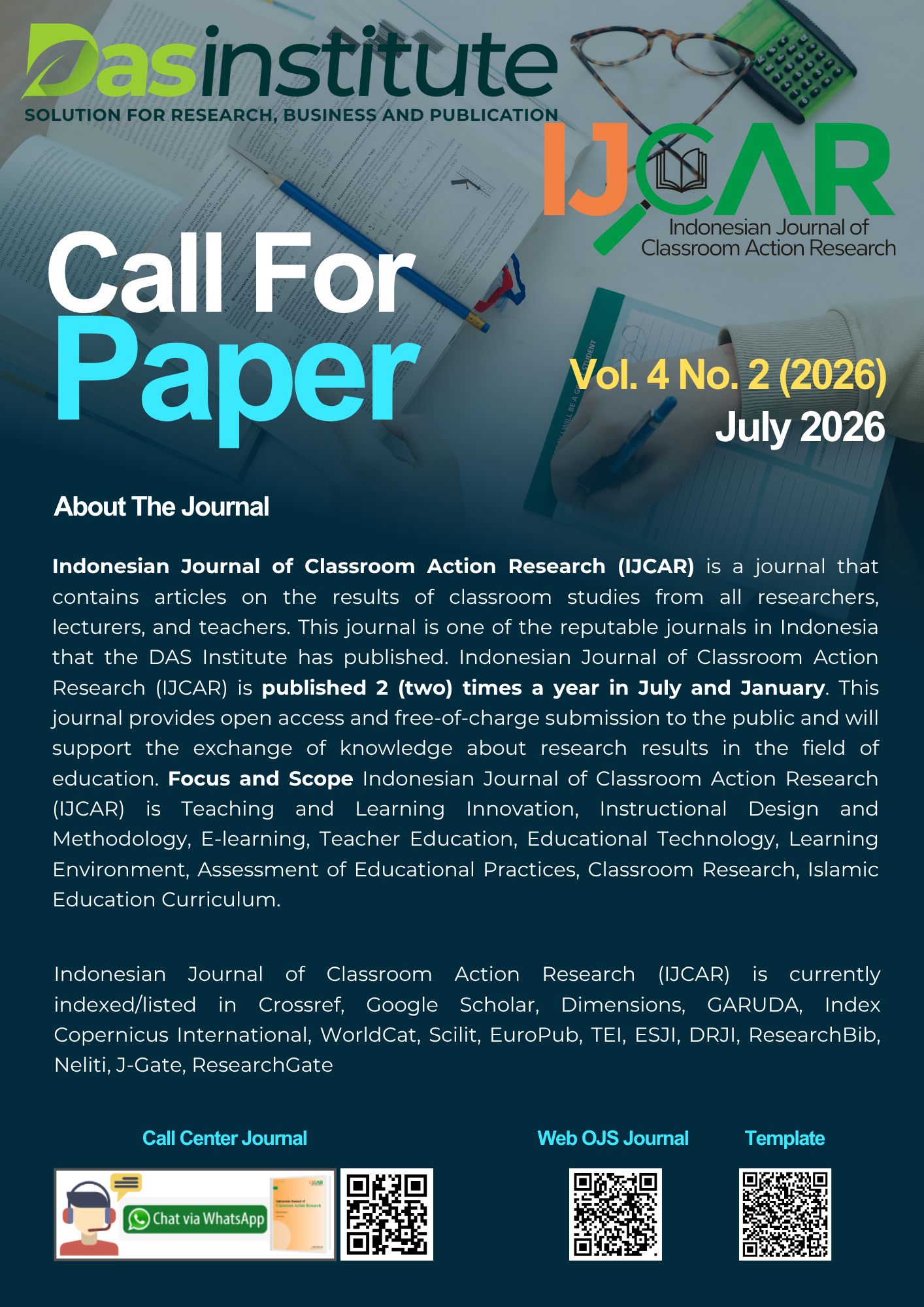 Call For Paper Volume 4 Nomor 2 July 2026 | Indonesian Journal of Classroom Action Research