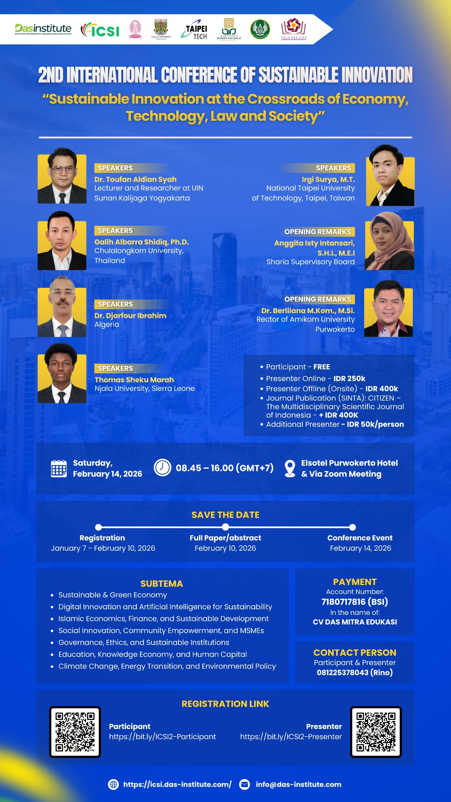 Call For Paper 2nd International Conference on Sustainable Innovation (ICSI) 2026
